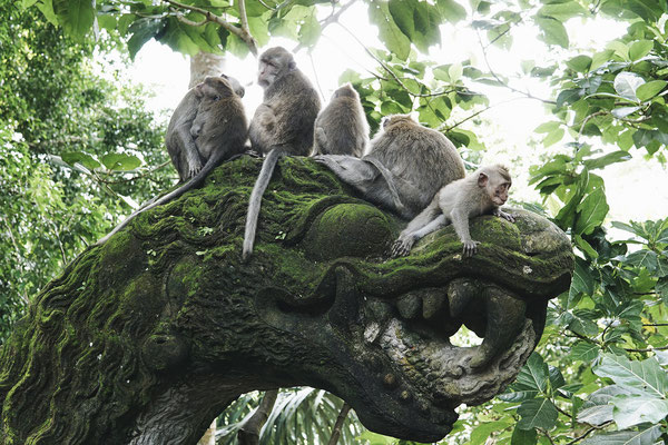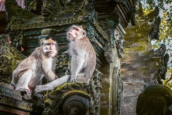 Camminata alla “Monkey Forest” dove centinaia di macachi vivono tra le rappresentazioni delle divinità Indù.