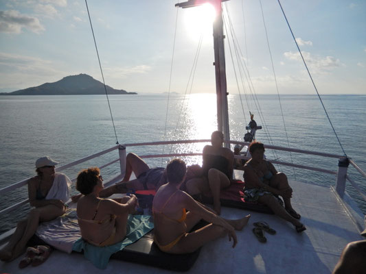 In Indonesia sono previsti diversi spostamenti in barca. Ad eccezione dei giorni 10 e 11, dove avremo due speed boat, nelle altre giornate l'imbarcazione utilizzata è grande e stabile e la navigazione procede quindi a "ritmo rilassato": in barca infatti si può prendere un caffè/the, mangiare un frutto, sedersi al tavolo e chiaccherare, ecc