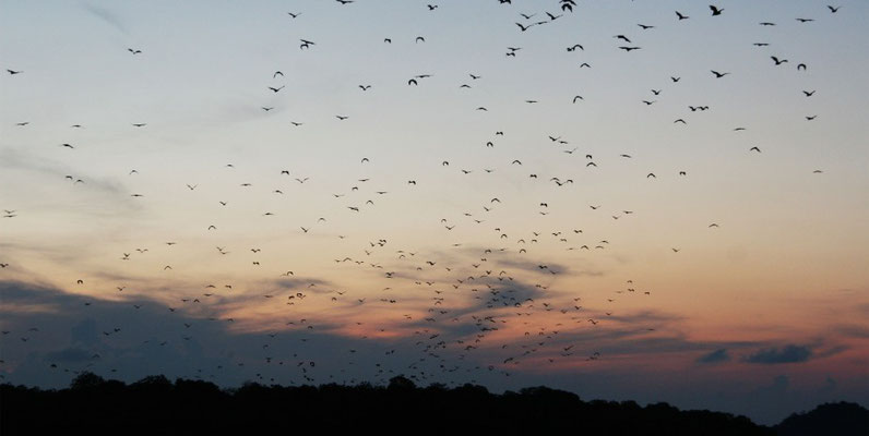Trasferimento a Kalong per assistere allo spettacolo di migliaia di volpi volanti che si alzano in cielo al tramonto dalle mangrovie.