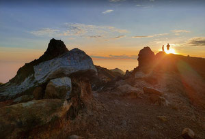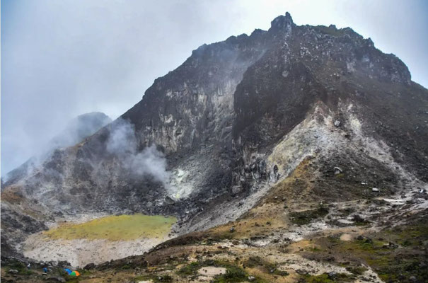 Saliremo a piedi all'alba su un vulcano attivo, il Monte Sibayak, lungo un trekking che porta fino alla cima tra vapori sulfurei e panorami mozzafiato all'alba.