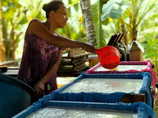 Escursione attraverso campagne e villaggi tradizionali. Sosta tra le risaie per osservare le tecniche di coltivazione, visita a una fattoria ecologica e a un giardino di spezie tropicali. Scopriremo la produzione artigianale di zucchero di palma e tofu.