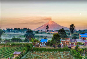 Volo per Medan (Indonesia) e trasferimento di 3 ore circa verso Brastagi, tra montagne e piantagioni.